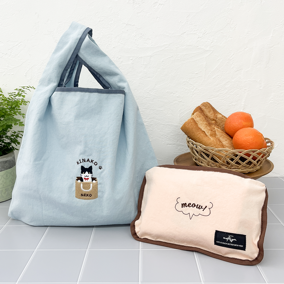 折りたたんで収納した時にみえる「meow!」の吹き出しが、