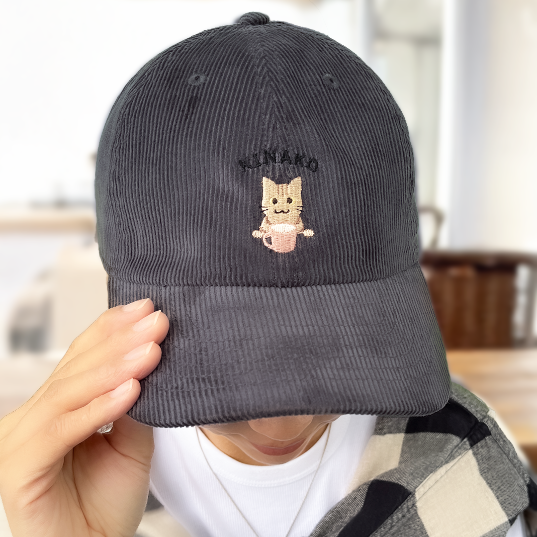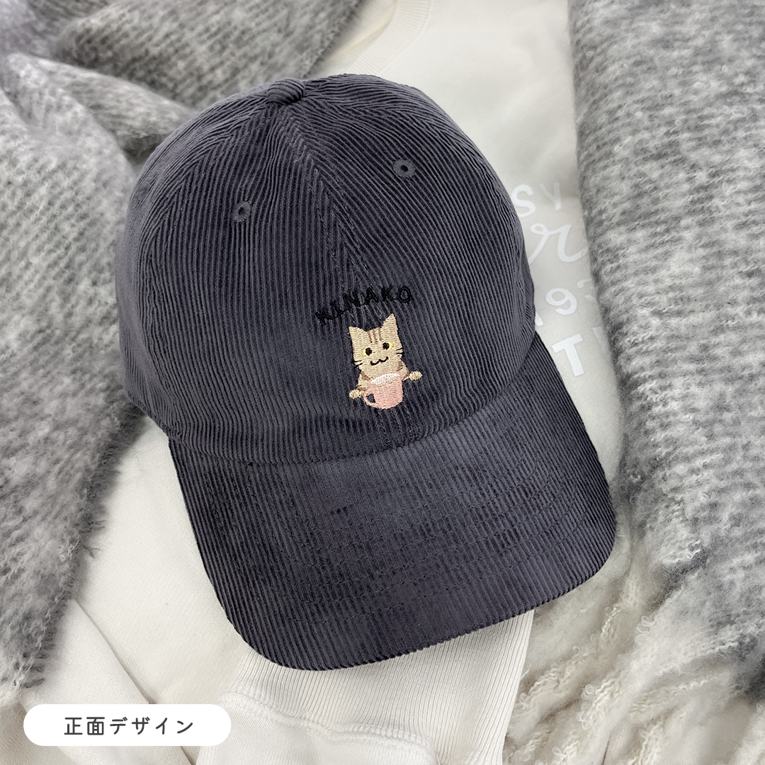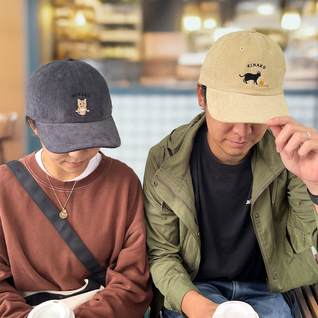 このキャップは、愛猫の名前やご自分のお名前を無料で刺繍できます。